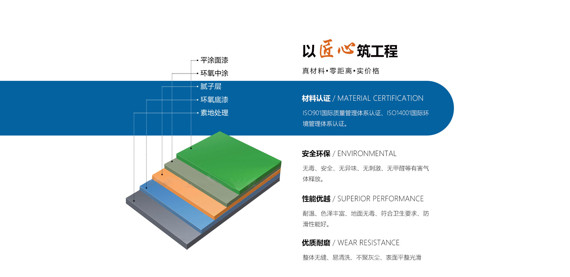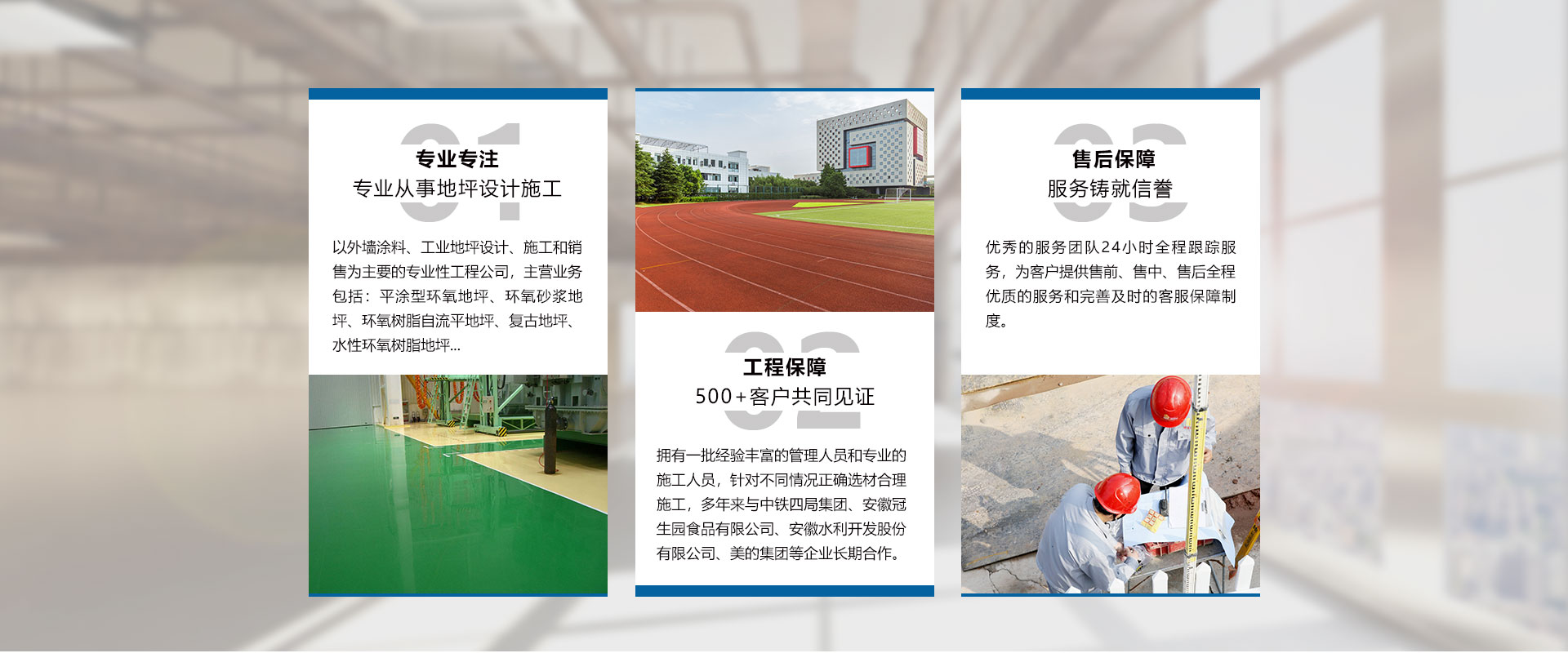 安徽世博裝飾工程有限公司成立于2009年,是一家以外墻涂料、工業(yè)地坪設計、施工和銷售為主要的專業(yè)性工程公司、是工業(yè)地坪施工的專業(yè)企業(yè)。公司設立了售后服務中心,用戶遍布全國大中小城市,一大批具有標志性的長期合作伙伴。“世博公司”環(huán)氧地坪工程,受到了越來越多的不同行業(yè)用戶的好評及青睞。公司擁有一批經(jīng)驗豐富的管理人員和專業(yè)的施工人員,以保障產(chǎn)品的成功應用,用較小的代價獲得理想的效果,尤其在地坪涂裝方面優(yōu)勢突出。而且以好的品質管理模式,向客戶提供“獨具魅力”、“性能優(yōu)異”、“質量穩(wěn)定”的產(chǎn)品。公司主要產(chǎn)品包括:平涂型環(huán)氧地坪、環(huán)氧砂漿地坪、環(huán)氧樹脂自流平地坪、滾涂型防靜電地坪、自流平防靜電地坪、復古地坪、水性環(huán)氧樹脂地坪、彩色透水混凝土地坪、壓花壓模藝術地坪、金剛砂耐磨硬化地坪、混凝土密封固化劑地坪、乙烯基酯重防腐地坪、GEP 標準型地坪、彈性PU運動場地坪、塑膠跑道地坪,PVC橡膠地板、停車場地坪、無震...